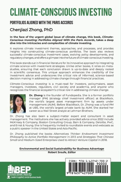 In the face of the urgent global issue of climate change, this book, Climate-Conscious Investing: Portfolios Aligned with the Paris Accords, takes a deep dive into the intricacies and complexities of climate investing. It explores climate investment themes, approaches, and processes and provides insights into constructing climate-conscious portfolios. The book also reviews successful climate-conscious investment cases, evolving policy developments, and regulatory changes and offers a glimpse into the future of climate-conscious investing. This book stands out in financial literature for its innovative approach to integrating climate science with investment strategies. Unlike other books, it relies on meta-studies, ensuring that each conclusion drawn is up-to-date and deeply rooted in scientific consensus. This unique approach enhances the credibility of the investment advice and underscores the critical role of informed, science-based decision-making in addressing climate change through financial practices. Climate-Conscious Investing is a must-read for investors, policymakers, asset managers, investees, regulators, civil society and academia, and anyone who recognizes the financial ecosystem's critical role in addressing climate change.