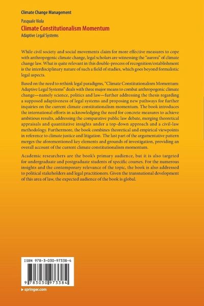 Based on the need to rethink legal paradigms, "Climate Constitutionalism Momentum: Adaptive Legal Systems" deals with three major means to combat anthropogenic climate change-namely science, politics and law-further addressing the thesis regarding a supposed adaptiveness of legal systems and proposing new pathways for further inquiries on the current climate constitutionalism momentum. The book introduces the international efforts in acknowledging the need for concrete measures to achieve ambitious results, addressing the comparative public law debate, merging theoretical appraisals and quantitative insights under atop-down approach and a civil-law methodology. Furthermore, the book combines theoretical and empirical viewpoints in reference to climate justice and litigation. The last part of the argumentative pattern merges the aforementioned key elements and grounds of investigation, providing an overall account of the current climate constitutionalism momentum.