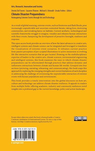 This open access book demonstrates how the latest advances in creative arts, intelligent systems and climate science can be integrated and leveraged to transform the visualisation of extreme event scenarios. It reframes current practice from passive perception of pre-scripted illustrations to active immersion in evolving life-like interactive scenarios that are geo-located. Drawing on the multidisciplinary expertise of leaders in the creative arts, climate sciences, environmental engineering, and intelligent systems, this book examines the waysin which climate disaster preparedness can be reformulated through practices that address dynamic and unforeseen interactions between climate and human life worlds. Grouped into four sections (picturing, narrating, rehearsing, and communicating), this book maps this approach by exploring the emerging strengths and current limitations of each discipline in addressing the challenge of envisioning the unpredictable interaction of extreme events with human populations and environments.