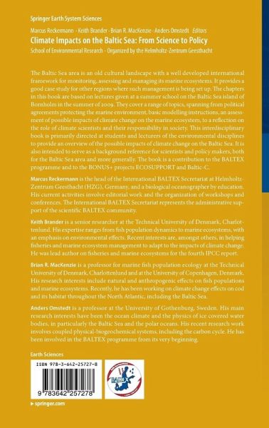 Preface.- 1 International agreements and Baltic Sea environmental management.- 2 HELCOM Baltic Sea Action Plan: An ecosystem approach to the management of human activities.- 3 Some aspects of the Baltic Sea marine system.- 4 A basic introduction to climate modeling and its uncertainties.- 5 Impacts of climate change, including acidification, on marine ecosystems and fisheries.- 6 Towards Integrated Ecosystem Assessments (IEAs) of the Baltic Sea - Investigating ecosystem state and historical development.- 7 Sustainable climate science.