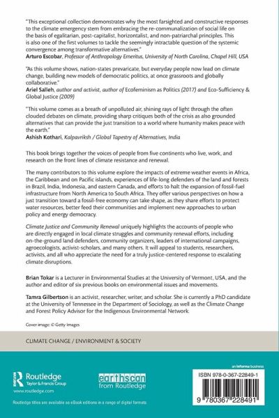 This book brings together the voices of people from five continents who live, work and research on the front lines of climate resistance and renewal. It will appeal to students, researchers, activists, and all who appreciate the need for a truly justice-centered response to escalating climate disruptions.