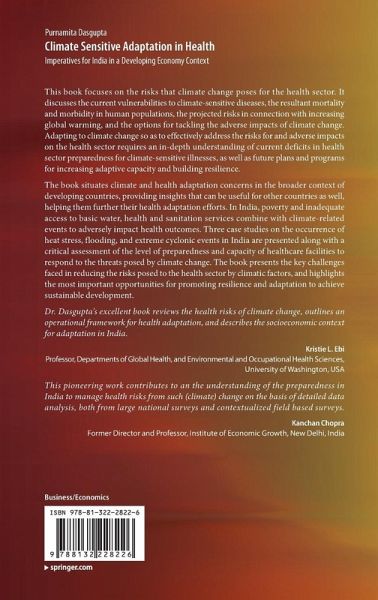 Dr. Dasgupta's excellent book reviews the health risks of climate change, outlines an operational framework for health adaptation, and describes the socioeconomic context for adaptation in India. - Kristie L. EbiProfessor, Departments of Global Health, and Environmental and Occupational Health Sciences, University of Washington, USA