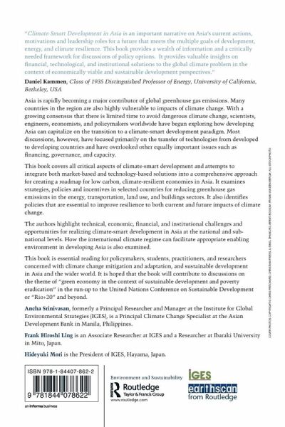 Asia is rapidly becoming a major contributor of global greenhouse gas emissions. Also many countries in the region are highly vulnerable to impacts of climate change. With a growing consensus that there is limited time to avoid dangerous climate change, scientists, engineers, economists and policymakers worldwide have begun exploring how developing Asia can capitalize on the transition to a climate-smart development paradigm. Most discussions, however, have focused primarily on the transfer of technologies from developed to developing countries and have overlooked other equally important issues such as financing, governance, and capacity. This book covers all critical aspects of climate-smart development and attempts to integrate both market-based and technology-based solutions into a comprehensive approach for creating a roadmap for low carbon, climate-resilient economies in Asia. It examines strategies, policies and incentives in selected countries for reducing greenhouse gas emissions in the energy, transportation, land use, and buildings sectors. It also identifies policies that are essential to improve resilience to both current and future impacts of climate change. The book highlights technical, economic, financial, and institutional challenges and opportunities for realizing climate-smart development in Asia at the national and sub-national levels. How the international climate regime can facilitate appropriate enabling environment in developing Asia is also examined. This book is essential reading for policy makers, students, practitioners, and researchers concerned with climate change mitigation and adaptation, and sustainable development in Asia and the wider world. It is hoped that the book will contribute to discussions on the theme of "green economy in the context of sustainable development and poverty eradication" in the run-up to the United Nations Conference on Sustainable Development or "Rio +20" and beyond.