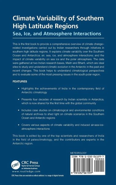 This is the first book to provide a comprehensive overview of climate change-related investigations carried out by Indian researchers through initiatives in southern high latitude regions. It explains climate variability over the Southern Ocean and Antarctica; air, sea, ice, and atmosphere interactions; and the impact of climate variability on sea ice and the polar atmosphere. The data were gathered at two Indian research bases, Maitri and Bharti, which are ideal sites to study and understand climatic evolution in Antarctic in the past and recent changes. This book helps to understand climatological perspectives and to evaluate some of the most pressing issues in the south polar region. FEATURES Highlights the achievements of India in the contemporary field of Antarctic climatology Presents four decades of research by Indian scientists in Antarctica, which is now shared for the first time with the global community Includes case studies on climatological and environmental conditions of natural archives to shed light on climate scenarios in the Southern Ocean and Antarctic regions Covers various aspects of climate variability and induced air-sea-ice-atmosphere interactions This book is edited by one of the top scientists and researchers of India in the field of paleoclimatology, and the contributors are experts in the Antarctic region.