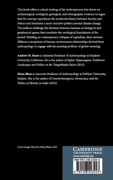 This book offers a critical reading of the Anthropocene that draws on archaeological, ecological, geological, and ethnographic evidence to argue that the concept reproduces the modernist binary between society and nature, and forecloses a more inclusive politics around climate change. The authors challenge the divisions between humans as biological and geophysical agents that constitute the ontological foundations of the period. Building on contemporary critiques of capitalism, they examine different conceptions of human-environment relationships derived from anthropology to engage with the pressing problem of global warming.