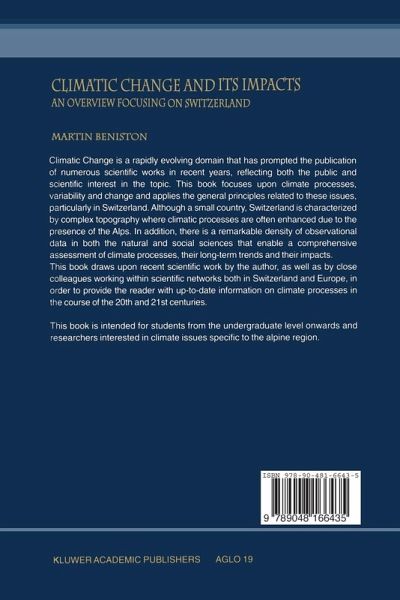 Climatic Change is a rapidly evolving domain that has prompted the publication of numerous scientific works in recent years, reflecting both the public and scientific interest in the topic. This book focuses upon climate processes, variability and change and applies the general principles related to these issues, particularly in Switzerland. Although a small country, Switzerland is characterized by complex topography where climatic processes are often enhanced due to the presence of the Alps. In addition, there is a remarkable density of observational data in both the natural and social sciences that enable a comprehensive assessment of climate processes, their long-term trends and their impacts.