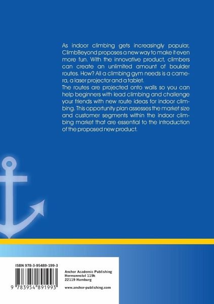 As indoor climbing gets increasingly popular, ClimbBeyond proposes a new way to make it even more fun. With the innovative product, climbers can create an unlimited amount of boulder routes. How? All a climbing gym needs is a camera, a laser projector and a tablet. The routes are projected onto walls so you can help beginners with lead climbing and challenge your friends with new route ideas for indoor climbing. This opportunity plan assesses the market size and customer segments within the indoor climbing market that are essential to the introduction of the proposed new product.