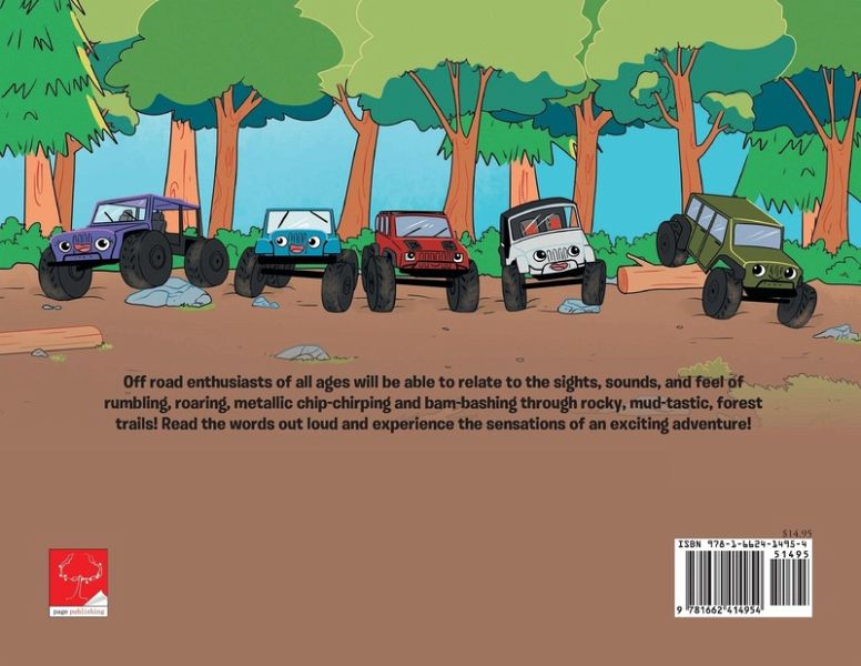 Off road enthusiasts of all ages will be able to relate to the sights, sounds, and feel of rumbling, roaring, metallic chip-chirping and bam-bashing through rocky, mud-tastic, forest trails! Read the words out loud and experience the sensations of an exciting adventure!