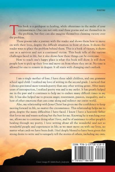 This book is one that takes the reader on a journey through the good and not so good parts of life. It touches on situations both in and out of one’s control, that they might find themselves in. Being in a difficult situation is bad enough, but not knowing how, when, or if it will ever end, is even worse. However, this book takes the reader through this journey of life, and furnishes them with hope to accept the things of life that cannot be changed and to fight to change the things that are within one’s power to change. Although each person will face countless difficulties and hardships in life, one must continue to push forward, as the victory is yours for the taking, if you just hold on to Jesus's unchanging hand. This book inspires the reader to see that a better life is out there for them, if they can just imagine themselves on the other side of the problem. There is so much compassion and genuineness in these poems, as Dorian has first-hand knowledge about how tough it is to remove oneself from toxic situations and to attempt to smile when on the inside one is feeling sad. This book has an amazing way of lifting a person’s spirit; in some cases, it forces them to make an immediate change in their life. The object of this book is to provide some eye-opening situations to the readers, and in some cases, this will be done by giving the worst-case scenario. As a result, the reader can see just how bad things can get if they do not change their ways or their way of thinking. Also, included are many stories of how one may have thought something or someone to be genuine, only to find out they were deceived; although this is not a good feeling, it equips one with the knowledge of the red flags in order to see the attack coming, if it ever comes their way again. A guidepost to stopping the controllable reoccurring hurts and pains in life is what this book displays. The poems are filled with pain and joy all in one. Some of the poems tug at your heart strings, some force one into a fighting stance, and some force one to get on their knees and pray for the right way to go. This collection of poetry has a poem for everyone, it can speak to the lives of many, or it can speak to the life of the one who needs it most. Most importantly, this book caringly reaches out to the reader, and helps them through their pain, by letting them know everything will be all right; that there is still hope, even if the situation appears desolate.