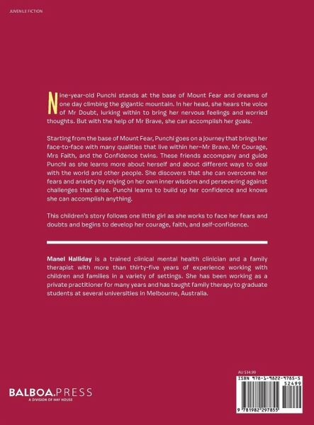 Nine-year-old Punchi stands at the base of Mount Fear and dreams of one day climbing the gigantic mountain. In her head, she hears the voice of Mr Doubt, lurking within to bring her nervous feelings and worried thoughts. But with the help of Mr Brave, she can accomplish her goals. Starting from the base of Mount Fear, Punchi goes on a journey that brings her face-to-face with many qualities that live within her-Mr Brave, Mr Courage, Mrs Faith, and the Confidence twins. These friends accompany and guide Punchi as she learns more about herself and about different ways to deal with the world and other people. She discovers that she can overcome her fears and anxiety by relying on her own inner wisdom and persevering against challenges that arise. Punchi learns to build up her confidence and knows she can accomplish anything. This children's story follows one little girl as she works to face her fears and doubts and begins to develop her courage, faith, and self-confidence.