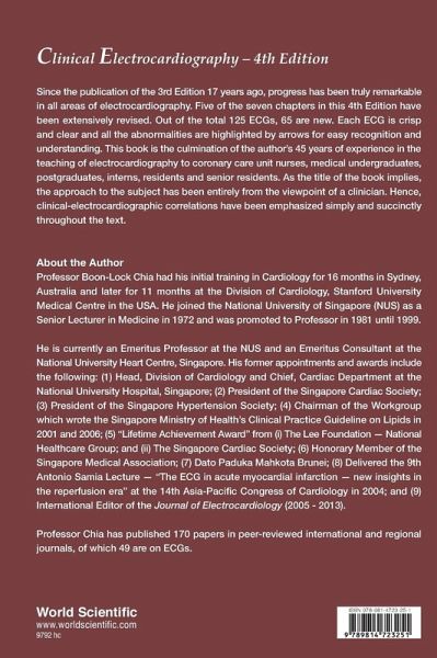 Since the publication of the 3rd Edition 17 years ago, progress has been truly remarkable in all areas of electrocardiography. Five of the seven chapters in this 4th Edition have been extensively revised. Out of the total of 125 ECGs, 65 are new. Each ECG is crisp and clear and all the abnormalities are highlighted by arrows for easy recognition and understanding. This book is the culmination of the author's 45 years of experience in the teaching of electrocardiography to coronary care unit nurses, medical undergraduates, postgraduates, interns, residents, senior residents and above. As the title of the book implies, the approach to the subject has been entirely from the viewpoint of a clinician. Hence, clinical-electrocardiographic correlations have been emphasized simply and succinctly throughout the text.