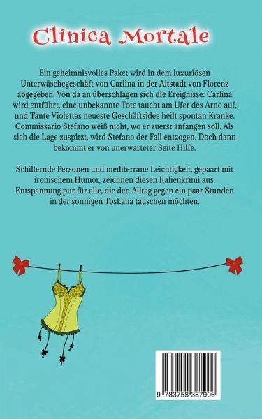 Ein geheimnisvolles Paket wird in dem luxuriösen Unterwäschegeschäft von Carlina in der Altstadt von Florenz abgegeben. Von da an überschlagen sich die Ereignisse: Carlina wird entführt, eine unbekannte Tote taucht am Ufer des Arno auf, und Tante Violettas neueste Geschäftsidee heilt spontan Kranke. Commissario Stefano weiß nicht, wo er zuerst anfangen soll. Als sich die Lage zuspitzt, wird Stefano der Fall entzogen. Doch dann bekommt er von unerwarteter Seite Hilfe.Schillernde Personen und mediterrane Leichtigkeit, gepaart mit ironischem Humor, zeichnen diesen Italienkrimi aus. Entspannung pur für alle, die den Alltag gegen ein paar Stunden in der sonnigen Toskana tauschen möchten.