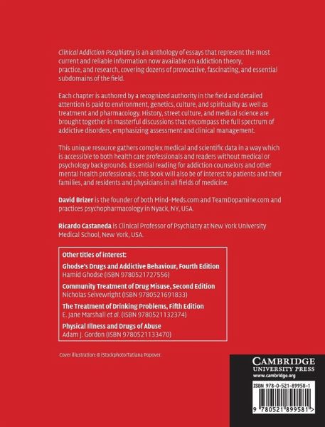 Clinical Addiction Psychiatry is an anthology of essays that represent the most current and authoritative information now available on addiction theory, practice and research, covering dozens of provocative, fascinating and essential subdomains of the field. Each chapter is authored by a recognized authority in the field and detailed attention is paid to environment, genetics, culture and spirituality as well as treatment and pharmacology. History, street culture, and medical science are brought together in masterful discussions that encompass the full spectrum of addictive disorders, emphasizing assessment and clinical management. This unique resource gathers complex medical and scientific data in a way which is accessible to both health care professionals and readers without medical or psychology backgrounds. Essential reading for addiction counselors and other mental health professionals, this book will also be of interest to patients and their families, and residents and physicians in all fields of medicine.