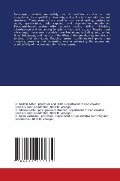 Bioceramic materials are widely used in endodontics due to their exceptional biocompatibility, bioactivity, and ability to bond with dentinal structures. These materials are used in root canal sealing, perforation repair, apexification, pulp capping, and regenerative endodontics. Bioceramic-based sealers offer superior sealing ability, minimizing microleakage and enhancing long-term treatment success. Despite these advantages, bioceramic materials have limitations, including long setting times, brittleness, and high costs. Handling challenges also require clinicians to adapt their techniques. Ongoing research continues to improve these materials, ensuring their increasing role in enhancing the success and predictability of modern endodontic treatments.