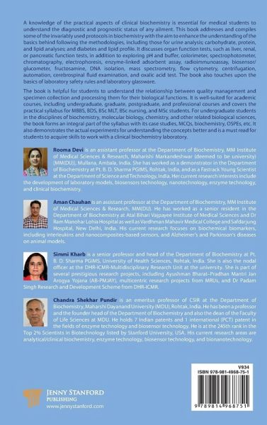 This book focuses on the basic and practical concepts of clinical biochemistry. It deals with the understanding of urine analysis; carbohydrate, protein, and lipid analyses; and diabetes and lipid profile.