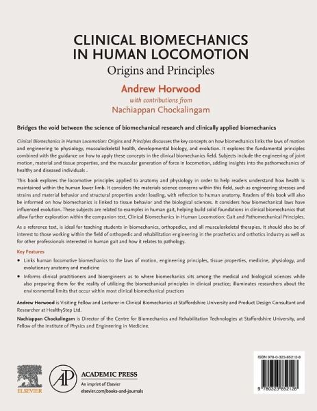 Origins and Principles of Clinical Biomechanics in Human Locomotion discusses key concepts of how biomechanics links to the development of pathology through mechanical laws, anatomy, physiology and health. It provides fundamental principles and practical data, and guidance of how to apply these in the clinical biomechanics field. Coverage includes: major joint movement, muscle action around joints, physiology and patho-physiology of bone, muscle and neurologic disorders. This reference is ideal for teaching students in biomechanics, orthopedics and physiotherapy. It should also be of interest to product development engineers, rehabilitation engineers, those working in prosthetics and orthotics, physiotherapists and occupational therapists.