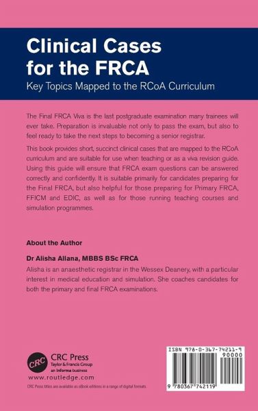 The Final FRCA Viva is the last postgraduate examination many trainees will ever take. Preparation is invaluable not only to pass the exam, but to feel ready to take the next steps to becoming a senior registrar. This book provides short, succinct clinical cases that are mapped to the RCoA curriculum.