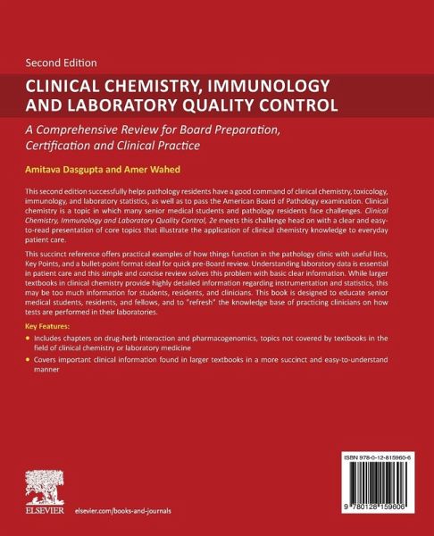 Clinical Chemistry, Immunology and Laboratory Quality Control: A Comprehensive Review for Board Preparation, Certification and Clinical Practice, Second Edition presents core topics and 70 case studies that illustrate the application of clinical chemistry knowledge to everyday patient care. This succinct reference offers practical examples of how things function in the pathology clinic with useful lists, key points, case studies and a bullet point format ideal for quick pre-board review. While larger textbooks in clinical chemistry provide highly detailed information regarding instrumentation and statistics, this book is designed to educate senior medical students, residents and fellows on how tests are performed.