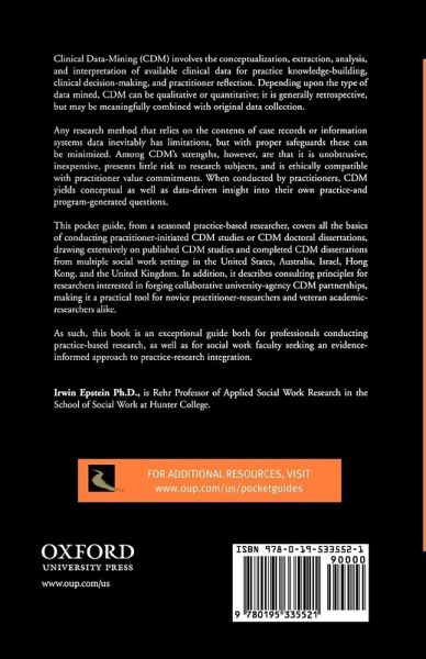 Clinical Data-Mining (CDM) involves the conceptualization, extraction, analysis, and interpretation of available clinical data for practice knowledge-building, clinical decision-making and practitioner reflection. Depending upon the type of data mined, CDM can be qualitative or quantitative; it is generally retrospective, but may be meaningfully combined with original data collection. Any research method that relies on the contents of case records or information systems data inevitably has limitations, but with proper safeguards these can be minimized. Among CDM's strengths however, are that it is unobtrusive, inexpensive, presents little risk to research subjects, and is ethically compatible with practitioner value commitments. When conducted by practitioners, CDM yields conceptual as well as data-driven insight into their own practice- and program-generated questions. This pocket guide, from a seasoned practice-based researcher, covers all the basics of conducting practitioner-initiated CDM studies or CDM doctoral dissertations, drawing extensively on published CDM studies and completed CDM dissertations from multiple social work settings in the United States, Australia, Israel, Hong Kong and the United Kingdom. In addition, it describes consulting principles for researchers interested in forging collaborative university-agency CDM partnerships, making it a practical tool for novice practitioner-researchers and veteran academic-researchers alike. As such, this book is an exceptional guide both for professionals conducting practice-based research as well as for social work faculty seeking an evidence-informed approach to practice-research integration.