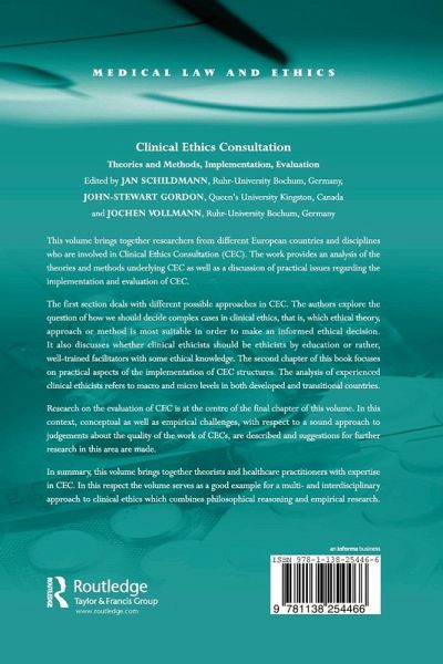 This volume brings together a group of researchers from different European countries and disciplines who are involved in Clinical Ethics Consultation (CEC). The work provides a discussion on the theories and methods underlying CEC and on the issues of implementation and evaluation.