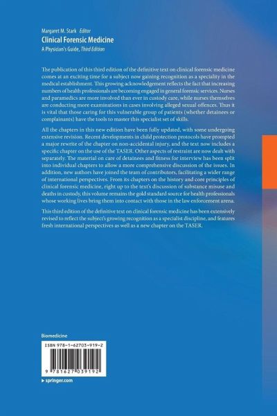 "The book presents a unique global perspective on every aspect of forensic medicine as it relates to the practicing physician. ... it is a reliable guide for practical forensic case work. I found the third edition of Clinical Forensic Medicine to be an outstanding reference book and a definitive text on clinical forensic medicine. I would recommend it as an excellent resource for physicians, forensic pathologists, toxicologists and police officers." (Petr Hejna, Forensic Science, Medicine and Pathology, Vol. 9, 2013)