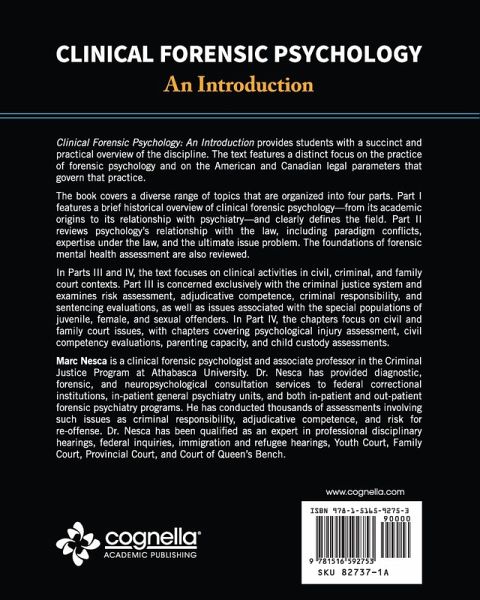 Clinical Forensic Psychology: An Introduction provides students with a succinct and practical overview of the discipline. The text features a distinct focus on the practice of forensic psychology and on the American and Canadian legal parameters that govern that practice. The book covers a diverse range of topics that are organized into four parts. Part I features a brief historical overview of clinical forensic psychology-from its academic origins to its relationship with psychiatry-and clearly defines the field. Part II reviews psychology's relationship with the law, including paradigm conflicts, expertise under the law, and the ultimate issue problem. The foundations of forensic mental health assessment are also reviewed. In Parts III and IV, the text focuses on clinical activities in civil, criminal, and family court contexts. Part III is concerned exclusively with the criminal justice system and examines risk assessment, adjudicative competence, criminal responsibility, and sentencing evaluations, as well as issues associated with the special populations of juvenile, female, and sexual offenders. In Part IV, the chapters focus on civil and family court issues, with chapters covering psychological injury assessment, civil competency evaluations, parenting capacity, and child custody assessments.