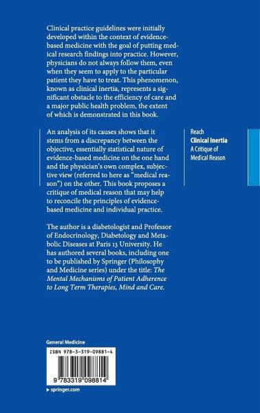 An analysis of its causes shows that it stems from a discrepancy between the objective, essentially statistical nature of evidence-based medicine on the one hand and the physician's own complex, subjective view (referred to here as "medical reason") on the other. This book proposes a critique of medical reason that may help to reconcile the principles of evidence-based medicine and individual practice.