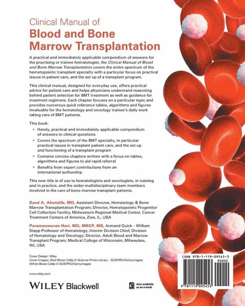 "the book provides a concise practical expert review in a well-organized format of 42 chapters, each annotated with numerous practical headings to enhance focused learning"....."The expert authors of each chapter in the Clinical Manual of Blood and Bone Marrow Transplantation are part of that success story, and their up-to-date contributions to the field are elucidated in the clearest of terms in this worthy addition to the literature. This book is recommended for The ASCO Post readers, especially residents and fellows who are interested in pursuing a career in blood cancers" The ASCO Post, September 2017 http://www.ascopost.com/issues/september-10-2017/a-new-manual-for-the-expanding-field-of-bone-marrow-transplantation