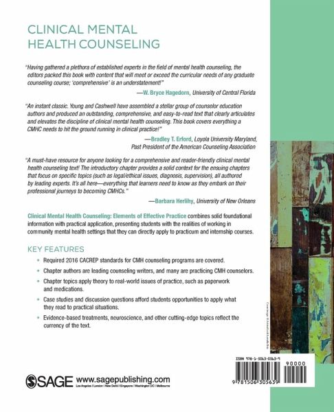 Referencing the 2016 CACREP standards, Clinical Mental Health Counseling: Elements of Effective Practice by editors J. Scott Young and Craig S. Cashwell combines solid foundational information with practical application for a realistic introduction to work in community mental health settings. Top experts in the field cover emerging models for clinical interventions as they explore cutting-edge approaches to CMH counseling. With case studies integrated throughout, students will be well prepared to move into practicum and internship courses as well as field-based settings.
