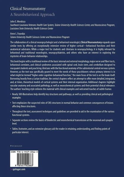 From the reviews: "Clinical Neuroanatomy: A Neurobehavioral Approach is an outgrowth of seminars requested by neuropsychology interns and residents ... . Readers will be impressed by the authors' attention to explaining the limitations of current anatomical and physiological knowledge and reasons for the often confusing overlapping descriptions of various structures. ... the work remains a laudable effort and worthy of consideration, not only by neuropsychologists but also as a valuable addition to one's reference library by all psychologists who intend to work in health care." (John E. Carr, PsycCRITIQUES, Vol. 53 (31), 2008) "This book describes the role of both higher cortical and subcortical structures in understanding neurological deficits. ... Students and clinicians in neuropsychology are the primary audience, but the book is also relevant for 'behavioral and traditional neurologists, neuropsychiatrists, and others who have an interest in exploring the mysteries of brain-behavior relationships' ... . helps readers to understand brain structure and function from both the vantage point of normal behavior and pathology." (Gary B Kaniuk, Doody's Review Service, October, 2008) "Tulane Medical School clinical neuropsychologist Mendoza and behavioral neurologist Foundas team up to provide an in-depth overview of higher-order functions, their anatomical and neurochemical substrates, pathology, and theories of functional brain organization. ... An outgrowth of seminars to neuropsychology interns and residents ... . It is also suitable for other clinicians who work with the neurologically impaired." (SciTech Book News, June, 2008)