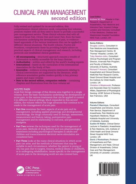 Acute Pain brings coverage of this diverse area together in a single comprehensive clinical reference, from the basic mechanisms underlying the development of acute pain, to the various treatments that can be applied to control it in different clinical settings. Much expanded in this second edition, the volume reflects the huge advances that continue to be made in acute pain management. Part One examines the basic aspects of acute pain and its management, including applied physiology and development neurobiology, the drugs commonly used in therapy, assessment, measurement and history-taking, post-operative pain management and its relationship to outcome, and preventive analgesia. Part Two reviews the techniques used for the management of acute pain. Methods of drug delivery and non-pharmacological treatments including psychological therapies in adults and children and transcutaneous electrical nerve stimulation are considered here. Part Three looks at the many clinical situations in which acute pain can arise, and the methods of treatment that may be suitable in each circumstance, whether the patient is young or old, has pain due to surgery, trauma, medical illness or childbirth, or is undergoing rehabilitation. Issues specific to the management of acute pain in the developing world are also covered here.