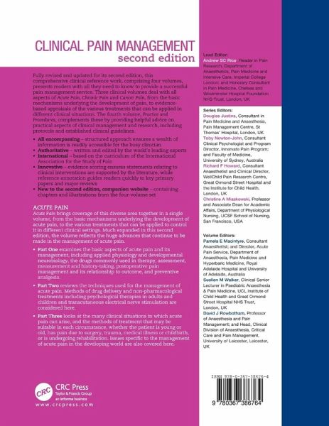 A clinical reference work dealing with all aspects of acute pain, from the basic mechanisms underlying the development of pain, to the various treatments that can be applied in different clinical situations.