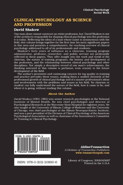One man alone cannot construct an entire profession, but David Shakow is one of the architects responsible for shaping clinical psychology into the profession it is today. Reflecting the ideas of a man whose name is synonymous with the field, this volume brings together for the first time his most significant papers in this area and presents a comprehensive, far-reaching overview of clinical psychology addressed to all of its professionals and students. Dr. Shakow's forty years of influence as a clinician, training program administrator, professor, researcher, and public servant are profoundly reflected in these papers. They offer insight into the work and world of the clinician, the nature of training programs, the history and development of the profession, and the relationship between clinical psychology and other disciplines. Not simply a descriptive record of one man's achievements, the thinking mirrored in this volume is pertinent, even crucial, to the future development of the field. The author's persistent and continuing concern for top quality in training and practice pervades these essays, making them a unified chronicle of the professional growth of clinical psychology and of a master professional's ideas and involvements with the problems and issues in his field. No clinician or student can fully understand the nature of the field, how it came to be, and where it is going, without reading this volume.