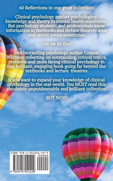 60 Reflections in one great collection! Clinical psychology applies psychological knowledge and theory to mental health conditions. But psychology students and professionals know information in textbooks and lecture theatres miss real-world issues sometimes. Can we fix this? Join bestselling psychology author Connor Whiteley reflecting on outstanding, critical topics, problems and more facing clinical psychology in this brilliant, engaging book going far beyond the textbooks and lecture theatres. If you want to expand your knowledge of clinical psychology in the real-world. You MUST read this…mehr