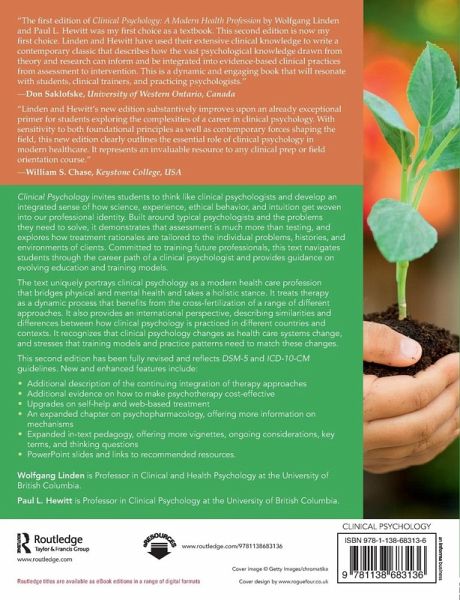 Clinical Psychology invites students to think like clinical psychologists and develop an integrated sense of how science, experience, ethical behavior, and intuition get woven into our professional identity. Built around typical psychologists and the problems they need to solve, it demonstrates that assessment is much more than testing, and explores how treatment rationales are tailored to the individual problems, histories, and environments of clients. Committed to training future professionals, this text navigates students through the career path of a clinical psychologist and provides guidance on evolving education and training models. The text uniquely portrays clinical psychology as a modern health care profession that bridges physical and mental health and takes a holistic stance. It treats therapy as a dynamic process that benefits from the cross-fertilization of a range of different approaches. It also provides an international perspective, describing similarities and differences between how clinical psychology is practiced in different countries and contexts. It recognizes that clinical psychology changes as health care systems change, and stresses that training models and practice patterns need to match these changes. This second edition has been fully revised and reflects DSM-5 and ICD-10-CM guidelines. New and enhanced features include: Additional description of the continuing integration of therapy approaches Additional evidence on how to make psychotherapy cost-effective Upgrades on self-help and web-based treatment An expanded chapter on psychopharmacology, offering more information on mechanisms Expanded in-text pedagogy, offering more vignettes, ongoing considerations, key terms, and thinking questions Powerpoint slides and links to recommended resources.