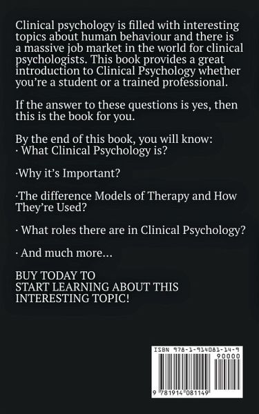 Clinical psychology is filled with interesting topics about human behaviour and there is a massive job market in the world for clinical psychologists. This book provides a great introduction to Clinical Psychology whether you're a student or a trained professional. So...Do you want to learn about clinical psychology? Do you want to learn about models of therapies? Do you want to learn about formulation and more? If the answer to these questions is yes, then this is the book for you. As this book explains a wide range of clinical psychology is an easy to understand way. By the end of this book, you will know:What Clinical Psychology is? Why it's Important? The Difference Models of Therapy and How They're Used? What Roles there are in Clinical Psychology? And much more... BUY TODAY TO START LEARNING ABOUT THIS INTERESTING TOPIC! If you like this book, then you will like Abnormal Psychology 2nd Edition as well. Clinical Psychology Content: Introduction Part 1: Introduction to Clinical Psychology What is Clinical Psychology? Key concepts in Clinical Psychology Influences in Clinical Psychology Populations and Settings Part 2: Models of Therapy Models of Therapy Compassion Focus Therapy Third Wave of CBT Part 3: Intervention and Assessment Intervention Assessment Part 4: Formulation Introduction to Formulation Types of Formulation ABC Technique/ Tool Part 5: Research and Additional Roles Research in Clinical Psychology Additional Roles in Clinical psychology