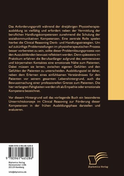 Vor diesem Hintergrund soll das Buch ein besonderes Unterrichtskonzept im Clinical Reasoning zur Förderung dieser Kompetenzen in der frühen Ausbildungsphase darstellen und evaluieren.
