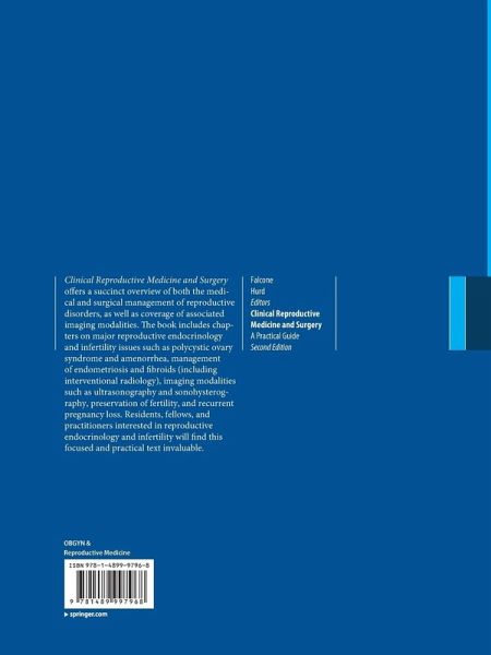 Clinical Reproductive Medicine and Surgery offers a succinct overview of both the medical and surgical management of reproductive disorders, as well as coverage of associated imaging modalities. The book includes chapters on major reproductive endocrinology and infertility issues such as polycystic ovary syndrome and amenorrhea, management of endometriosis and fibroids (including interventional radiology), imaging modalities such as ultrasonography and sonohysterography, preservation of fertility, and recurrent pregnancy loss. Residents, fellows, and practitioners interested in reproductive endocrinology and infertility will find this focused and practical text invaluable.