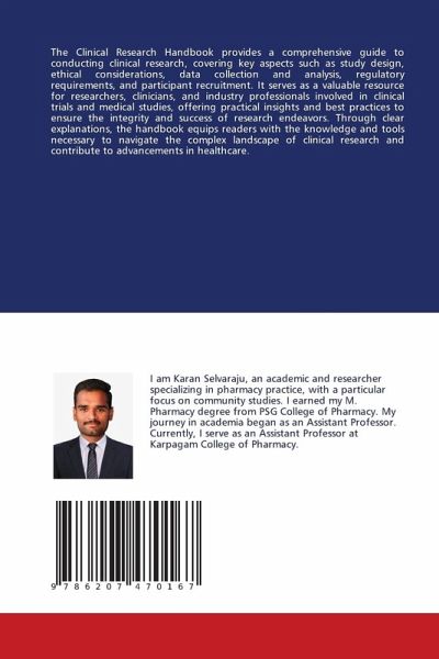 The Clinical Research Handbook provides a comprehensive guide to conducting clinical research, covering key aspects such as study design, ethical considerations, data collection and analysis, regulatory requirements, and participant recruitment. It serves as a valuable resource for researchers, clinicians, and industry professionals involved in clinical trials and medical studies, offering practical insights and best practices to ensure the integrity and success of research endeavors. Through clear explanations, the handbook equips readers with the knowledge and tools necessary to navigate the complex landscape of clinical research and contribute to advancements in healthcare.
