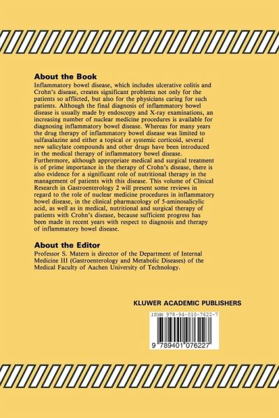 Inflammatory bowel disease - i.e. ulcerative colitis and Crohn's disease - not only creates significant patient morbidity but also imposes a diagnostic and therapeutic challenge to the physician in charge of these patients. Since the development of sulphasalazine by Dr Nanna Svartz in Sweden half a century ago, important improvements in the prognosis of ulcerative colitis and Crohn's disease have been achieved. This book makes an attempt to present and discuss some of the most recent advances in diagnostic procedures and therapeutic approaches to inflammatory bowel disease with special respect to Crohn's disease. Although the fmal diagnosis of ulcerative colitis and Crohn's disease is generally based on endoscopic, histological or X-ray examinations, nuclear medicine and its imaging procedures have established their place in certain aspects of inflammatory bowel disease. One chapter of this book is dedicated accordingly to the indications of nuclear diagnostic procedures in the clinical setting. Sulphasalazine has been the mainstay of medical therapy in ulcerative colitis and Crohn's disease of the colon. Recently 5-aminosalicylic acid has been discovered to be its active compound and sulphapyridine was found to be the component responsible for most of the adverse effects of sulpha salazine. It is not surprising that many studies have investigated 5-amino salicylic acid as a single therapeutic agent in inflammatory bowel disease.