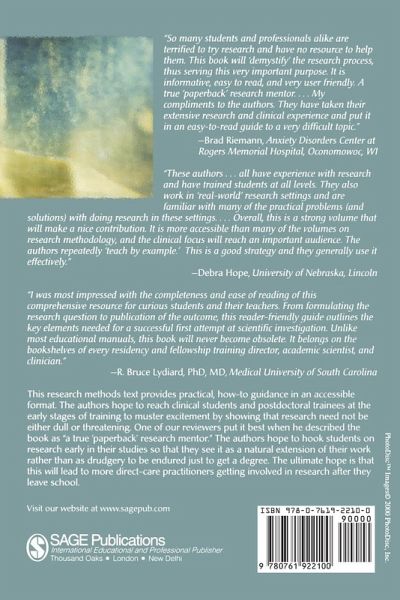 The philosophy behind this research methods text is to provide practical, how-to guidance in an accessible format. The authors hope to reach clinical students and postdoctoral trainees at the early stages of training to muster excitement by showing that research need not be either dull or threatening. Their goal is to "demystify the research process," with a style that is informative yet easy-to-read, humorous, and user friendly. One of our reviewers puts it best when he describes the book as "a true 'paperback' research mentor." The authors hope to hook students on research early in their studies so that they see it as a natural extension of their work rather than as drudgery to be endured just to get a degree. The ultimate hope is that this will lead to more direct-care practitioners getting involved in research after they leave school. This book is also different from any other on the subject in being problem oriented. It will emphasize research methods that are appropriate to most clinical settings and will deal with many issues of clinical research that are often ignored by other research methods books.