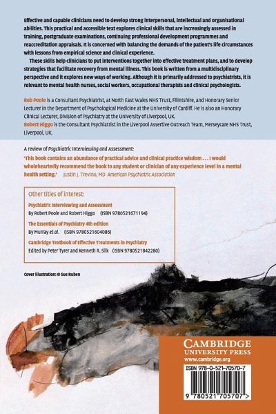 Effective and capable clinicians need to develop strong interpersonal, intellectual and organisational abilities. This practical and accessible text explores clinical skills that are increasingly assessed in training, postgraduate examinations, continuing professional development programmes and reaccreditation appraisals. It is concerned with balancing the demands of the patient's life circumstances with lessons from empirical science and clinical experience. These skills help clinicians to put interventions together into effective treatment plans, and to develop strategies that facilitate recovery from mental illness. This book is written from a multidisciplinary perspective and it explores new ways of working. Although it is primarily addressed to psychiatrists, it is relevant to mental health nurses, social workers, occupational therapists and clinical psychologists.