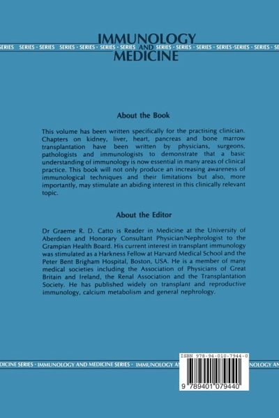 This volume has been written specifically for the practising clinician. All aspects of clinical transplantation have expanded enormously in recent years, but many of the doctors involved have received little or no tuition in immunology as medical students. The various chapters, written by physicians, surgeons, pathologists and immunologists present many of the currently important issues in transplantation and demonstrate that a basic undertaking of immunology is now essential in many areas of clinical practice. Perhaps this book will not only produce an increasing awareness of immunological technique but also and, more importantly, stimulate an abiding interest in this clinically relevant topic. Graeme R. Catto Aberdeen Royal Infirmary vii Series Editor's Note The modern clinician is expected to be the fount of all wisdom concerning conventional diagnosis and management relevant to his sphere of practice. In addition, he or she has the daunting task of comprehending and keeping pace with advances in basic science relevant to the pathogenesis of disease and ways in which these processes can be regulated or prevented. Immunology has grown from the era of antitoxins and serum sickness to a state where the study of many diverse cells and molecules has become integrated into a coherent scientific discipline with major implications for many common and crippling diseases prevalent throughout the world.