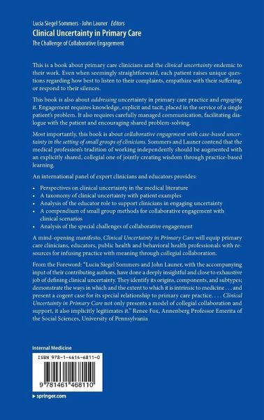 Most importantly, this book is about collaborative engagement with case-based uncertainty in the setting of small groups of clinicians. Sommers and Launer contend that the medical profession's tradition of working independently should be augmented with an explicitly shared, collegial one of jointly creating wisdom through practice-based learning.