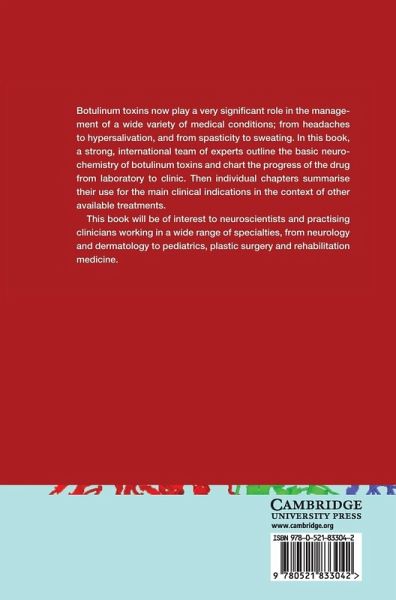 Botulinum toxins now play a very significant role in the management of a wide variety of medical conditions; from headaches to hypersalivation, and from spasticity to sweating. In this book, a strong, international team of experts outline the basic neurochemistry of botulinum toxins and chart the progress of the drug from laboratory to clinic. Then individual chapters summarize their use for the main clinical indications in the context of other available treatments. This book will be of interest to neuroscientists and practising clinicians working in a wide range of specialities, from…mehr