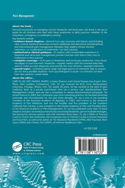 As headache and facial pain are two of the most common medical complaints, it is essential that practitioners are well equipped to handle these issues. This volume is designed for all clinicians dealing with these syndromes in daily practice-whether in the outpatient, emergency, or ambulatory setting. Presenting evidence-based chapters derived from past successes and failures, the book reviews both traditional and alternative interdisciplinary and interventional pain management therapies. The authors also discuss opioid usage and legal aspects of treatment help to prepare practitioners for a range of possible scenarios.…mehr