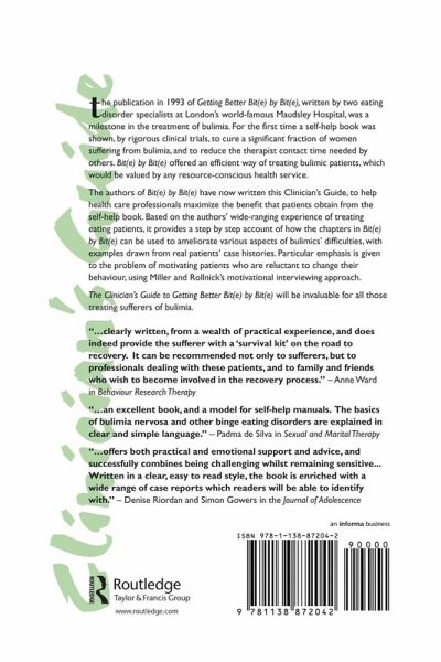 The publication four years ago of Getting Better Bit(e) by Bit(e), written by two eating disorder specialists at London's world-famous Maudsley Hospital, was a milestone in the treatment of bulimia. For the first time a self-help book was shown, by rigorous clinical trials, to cure a significant fraction of women suffering from bulimia, and to reduce the therapist contact time needed by others. Getting Better Bit(e) by Bit(e) offered an efficient way of treating bulimic patients, which would be valued by any resource-conscious health service. The authors of Getting Better Bit(e) by Bit(e) have now written this Clinician's Guide, to help health care professionals maximize the benefit that patients obtain from the self-help book. Based on the authors' wide-ranging experience of treating eating disorder patients, it provides a step-by-step account of how the chapters in Getting Better Bit(e) by Bit(e) can be used to ameliorate various aspects of bulimics' difficulties, with examples drawn from real patients' case histories. Particular emphasis is given to the problem of motivating patients who are reluctant to change their behaviour, using Miller and Rollnick's motivational interviewing approach. The Clinician's Guide to Getting Better Bit(e) by Bit(e) will be invaluable for all those treating sufferers of bulimia.