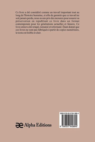 Clio, est un livre classique et rare, qui a été considéré comme important tout au long de l'histoire de l'humanité, et pour que cet ouvrage ne soit jamais oublié, chez Alpha Editions, nous avons fait des efforts pour sa préservation en rééditant ce livre dans un format moderne pour les générations présentes et futures. . Tout ce livre a été reformaté, retapé et repensé. Ces livres ne sont pas constitués de copies numérisées de leur ¿uvre originale et leur texte est donc clair et lisible. Ce volume remarquable s'inscrit dans les genres de Language and Literatures Romance literatures French, Italian, Spanish, Portuguese