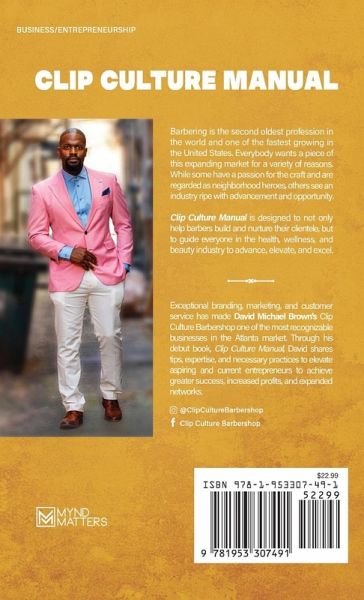 Barbering is the second oldest profession in the world and one of the fastest growing in the United States. Everybody wants a piece of this expanding market for a variety of reasons. While some have a passion for the craft and are regarded as neighborhood heroes, others see an industry ripe with advancement and opportunity. Clip Culture Manual is designed to not only help barbers build and nurture their clientele, but to guide everyone in the health, wellness, and beauty industry to advance, elevate, and excel.