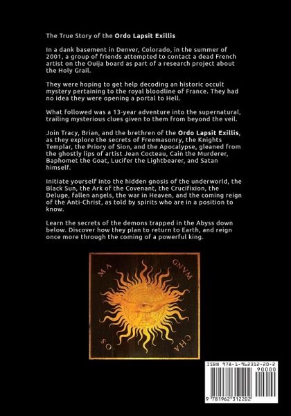 The True Story of the Ordo Lapsit Exillis In a dank basement in Denver, Colorado, in the summer of 2001, a group of friends attempted to contact a dead French artist on the Ouija board as part of a research project about the Holy Grail. They were hoping to get help decoding an historic occult mystery pertaining to the royal bloodline of France. They had no idea they were opening a portal to Hell. What followed was a 13-year adventure into the supernatural, trailing mysterious clues given to them from beyond the veil. Join Tracy, Brian, and the brethren of the Ordo Lapsit Exillis, as they explore the secrets of Freemasonry, the Knights Templar, the Priory of Sion, and the Apocalypse, gleaned from the ghostly lips of artist Jean Cocteau, Cain the Murderer, Baphomet the Goat, Lucifer the Lightbearer, and Satan himself. Initiate yourself into the hidden gnosis of the underworld, the Black Sun, the Ark of the Covenant, the Crucifixion, the Deluge, fallen angels, the war in Heaven, and the coming reign of the Anti-Christ, as told by spirits who are in a position to know. Learn the secrets of the demons trapped in the Abyss down below. Discover how they plan to return to Earth, and reign once more through the coming of a powerful king. Now, and only now, at this late hour, can this sub rosa information be told to the public. The window of revealing shall be agape but for a short time. Content:Preface Exordium: Ab Initio OLE Chapter 1: Testament of Cocteau Chapter 2: See the Sun Chapter 3: The Second Square Chapter 4: The Dohir Kings Chapter 5: I Reap All the Wealth Chapter 6: The Curse of the Nemes Chapter 7: Learning to Know Chapter 8: Kettle is Black Chapter 9: MemoryMask Chapter 10: Apocalypsis Baphometis Chapter 11: Operation DoubleCross Chapter 12: Order Out of Chaos Chapter 13: Strange Service Terminus: Further and Beyond